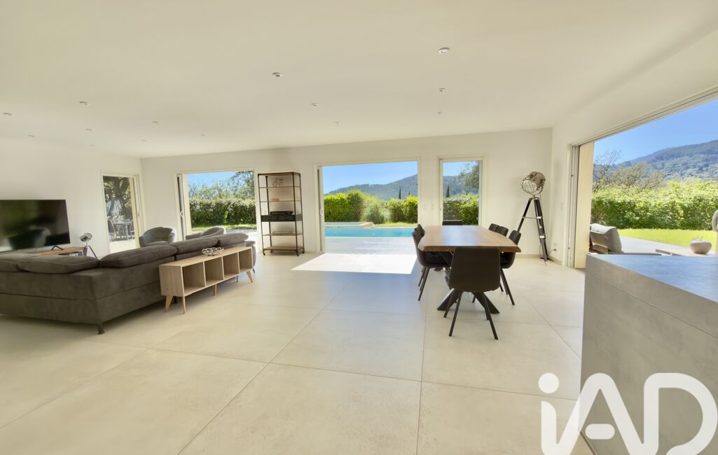 Édifiée en 2016, cette villa de 225 m² s’inscrit harmonieusement sur un terrain paysager de 1 940 m², offrant une magnifique vue dégagée sur les collines et le village de Seillans . Environnement calme, intime et baigné de lumière.