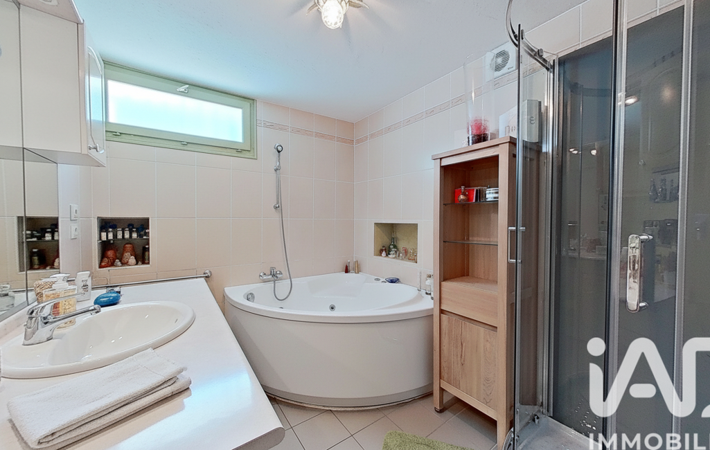 En rez-de-jardin, l’espace nuit se compose de quatre chambres ainsi que d’une salle de bain avec baignoire d'angle et douche.