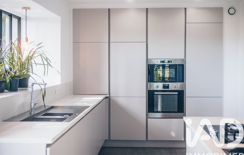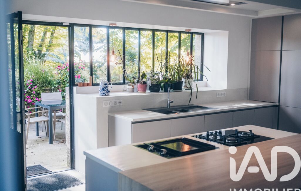 À l’extérieur, deux terrasses, une cuisine d’été avec cheminée, un atelier de bricolage et un abri voitures complètent ce cadre intime, discret et exceptionnel.