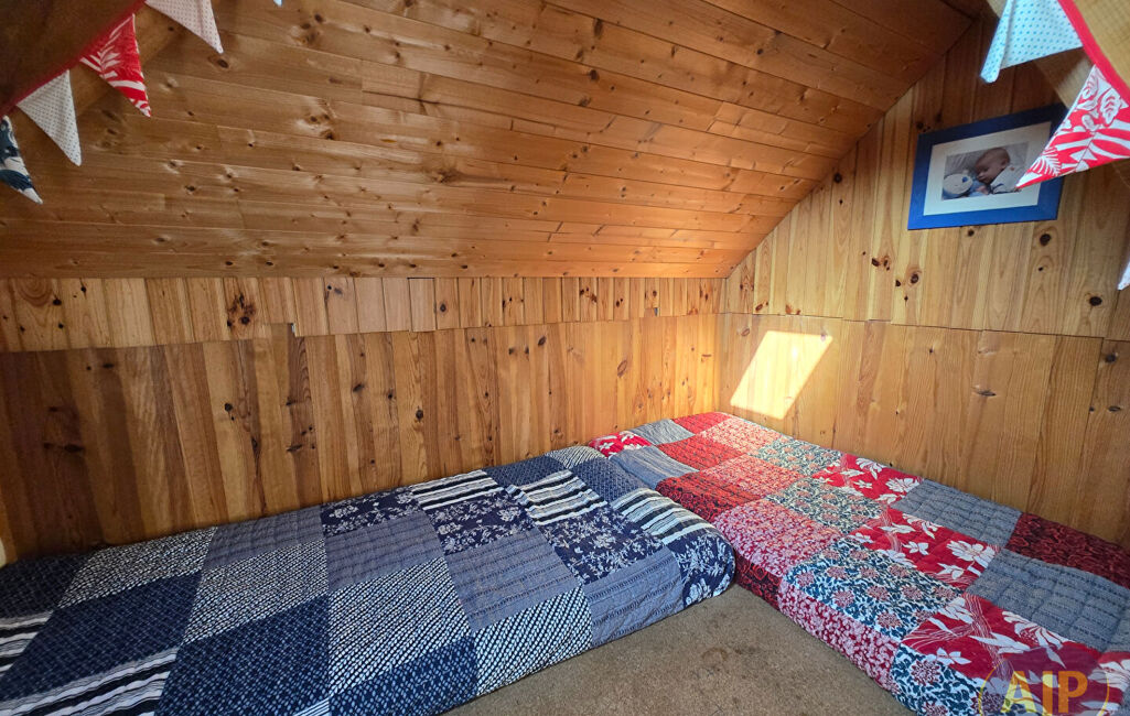 Etage : Une grande chambre et un coin couchage, wc et lavabo