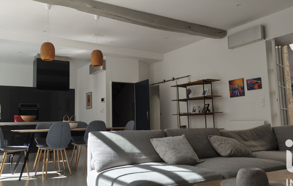 Dès l’entrée, vous serez séduit par une superbe pièce de vie baignée de lumière, sublimée par une grande hauteur sous plafond, créant une atmosphère à la fois élégante et chaleureuse.