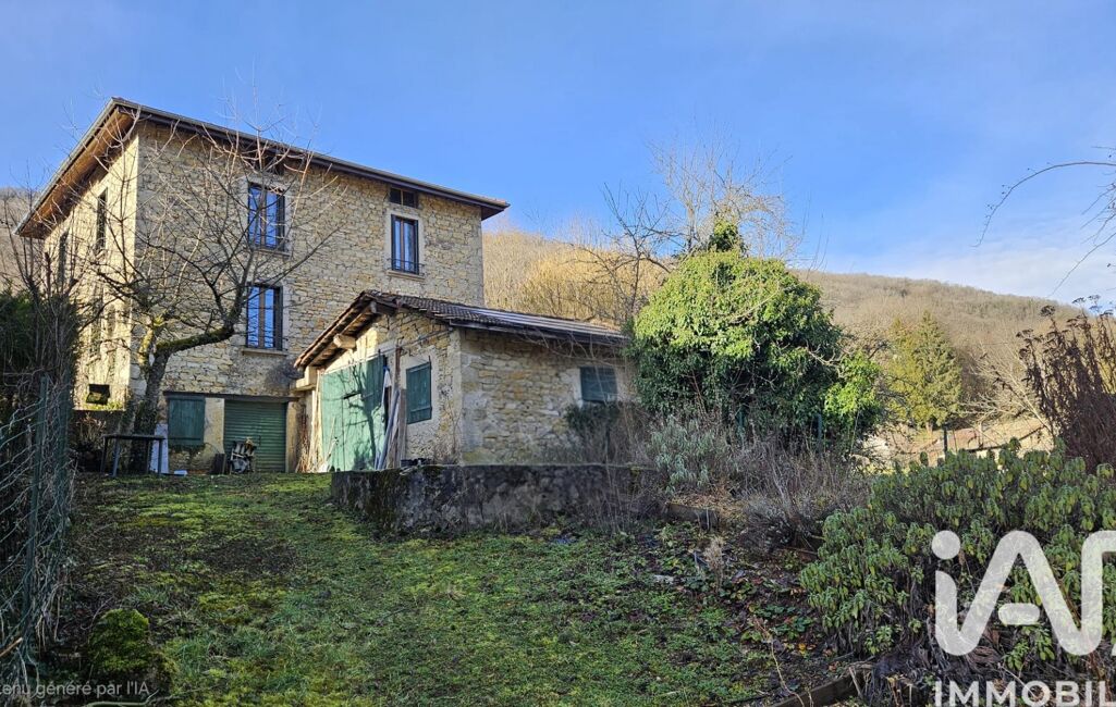 iad France - Axel Birolini vous propose: Charmante Maison en pierre d'environ 150 m2 , avec dépendance et terrain de 458 m2 , nichée sur les hauteurs de la commune d'Argis , à 20 mn d'Ambérieu , 1 h de Lyon , et 1h30 de Genève , 8 mn de la gare de Tenay .