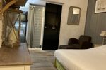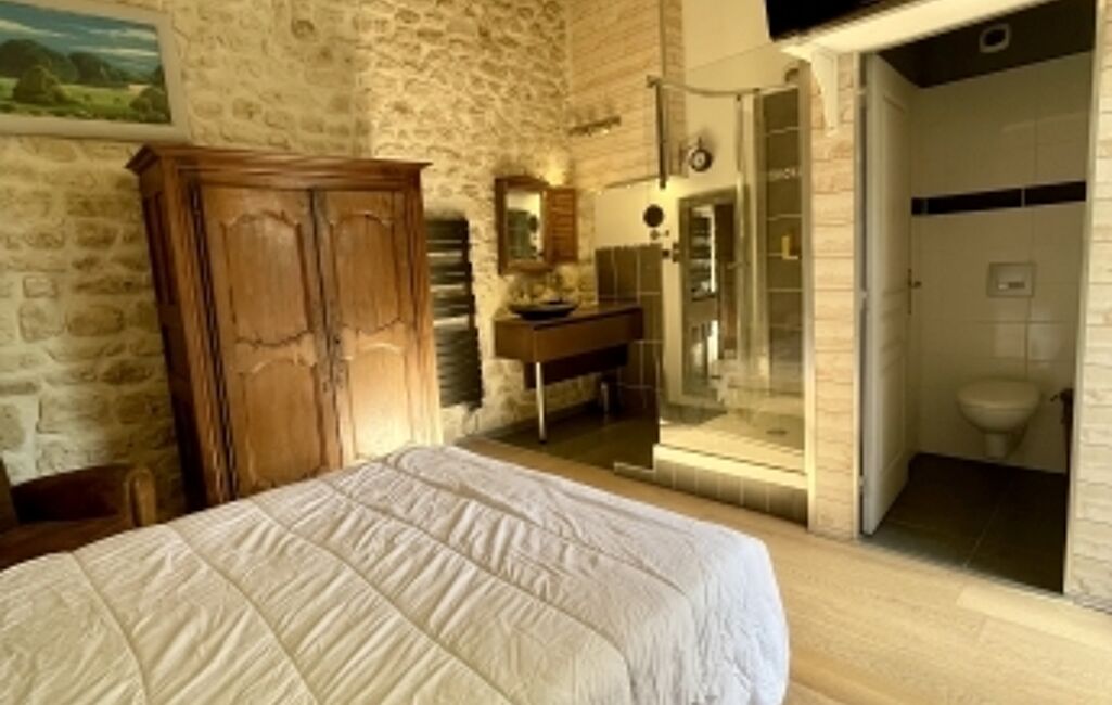 L’entrée donne sur une charmante terrasse, qui fait également office de stationnement privé. L’intérieur s’ouvre sur un séjour lumineux qui comprend un espace salle à manger convivial, une cuisine ouverte entièrement équipée au cOEur de la pièce, un espace détente, ainsi que des WC indépendants, pensés pour votre confort au quotidien. Une bibliothèque sur mesure, apporte caractère et élégance au séjour, tandis que la cheminée avec insert crée une atmosphère chaleureuse.