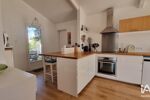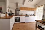 La cuisine, agréable et lumineuse, s’ouvre d’un côté sur le jardin et de l’autre sur une belle terrasse carrelée, parfaite pour les repas en extérieur aux beaux jours. Elle communique directement avec un cellier-buanderie pratique pour le rangement et l’organisation du quotidien.