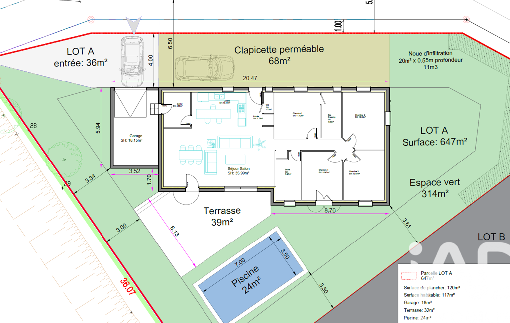 • Superficie terrain : 650 m²