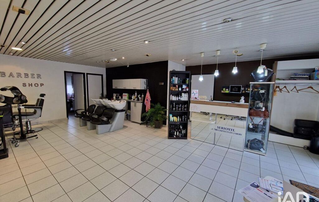 iad France - Julien Pepe (06 25 71 61 65) vous propose : Mur commercial et fond de commerce de 66m² environ idéalement situé sur la commune de Taissy, sur un axe passant. Actuellement exploité en salon de coiffure, cet établissement dispose de 4 postes de coiffage, 3 bacs à shampoing et 1 poste barber.
