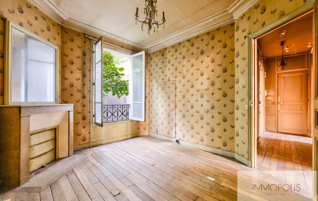 Calme, lumineux et sans perte de place, ce trois pièces au charme de l'ancien (parquet, moulures, cheminées) se compose d'une entrée, d'un séjour/salle à manger, d'une cuisine avec balcon filant de 5 m², d'une chambre sur cour avec dressing, d'une salle d'eau et de WC séparés.