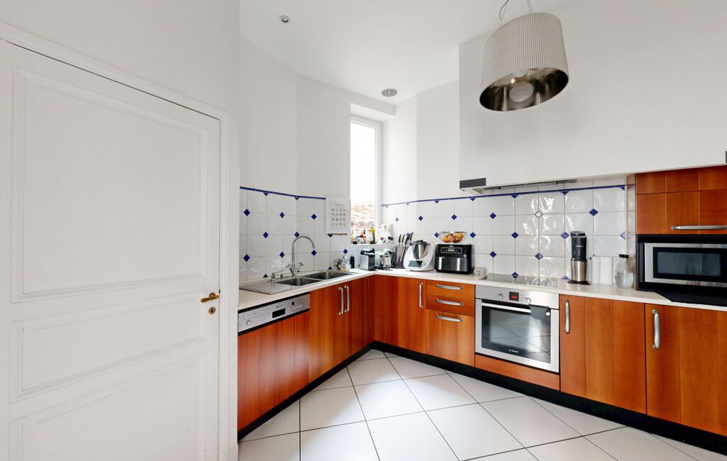 Cet appartement lumineux s'agencera parfaitement pour accueillir une famille ou pour y installer une activité commerciale ou une profession libérale, conformément au règlement de copropriété. Profitez de ses 5 pièces spacieuses, offrant une belle flexibilité dans l'aménagement des espaces de vie et de travail. Les deux salles de bain apportent confort et praticité au quotidien.
