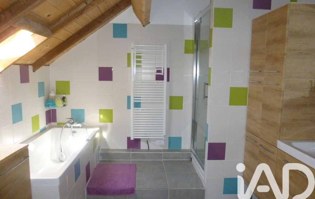 À l’étage, l’espace nuit propose trois chambres, dont une avec salle d’eau attenante, ainsi qu’une grande salle de bains avec baignoire, douche et WC.