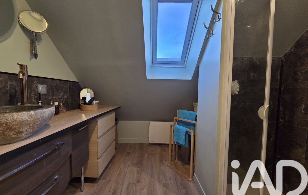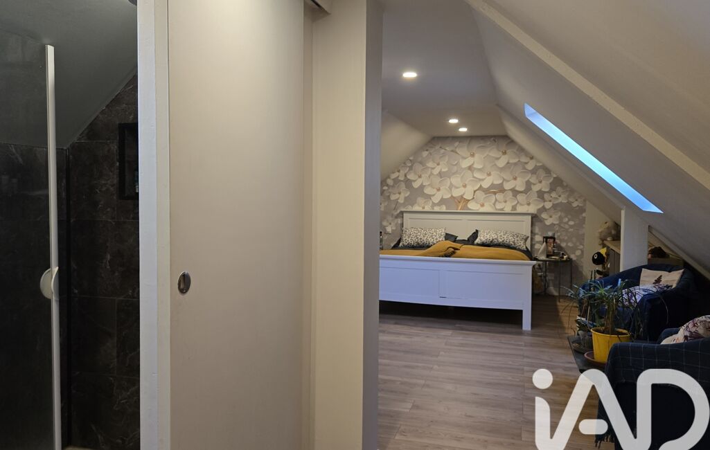 À l’étage : 1 mezzanine qui peut servir de bureau, et la suite parentale avec sa salle d’eau et WC séparés, le tout sur 42m² au sol.