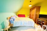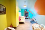 Il se compose d’une entrée, une cuisine ouverte, aménagée et équipée, ainsi qu’un double séjour chaleureux avec cheminée. Le rez-de-chaussée propose également deux chambres, un dressing, une salle d’eau et WC.