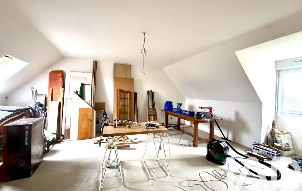 À l’étage, un palier,avec plancher béton, dessert deux grandes chambres et une pièce restant à aménager(sols) offrant la possibilité de créer deux chambres supplémentaires selon vos besoins.
