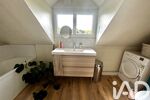 À l’étage, un palier dessert une salle de bain récente avec WC et emplacement pour machine à laver, ainsi que deux chambres, réparties de part et d’autre.