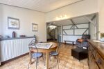Dès l'entrée, vous accédez directement au garage. Vous trouverez également un WC indépendant (sanibroyeur) avec lavabo, une cuisine indépendante aménagée ainsi qu'un séjour lumineux, idéal pour vos moments en famille. Garage avec porte automatique.