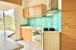 Le beau hall ouvre sur deux chambres, une salle de bain, des toilettes indépendants. Il distribue également la cuisine dont la baie vitrée ouvre sur un balcon avec vue sur les montagnes.