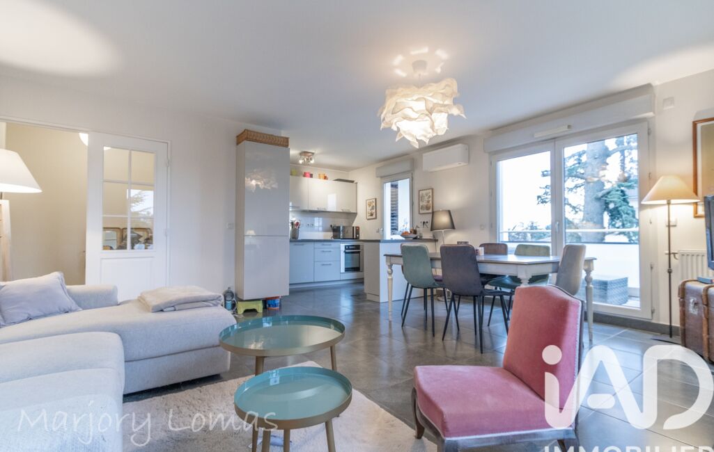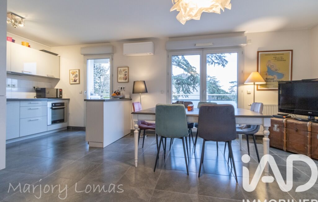 Situé au 2ᵉ et dernier étage avec ascenseur, l’appartement propose une entrée bien définie qui mène à une belle pièce de vie lumineuse avec cuisine entièrement équipée. L’ensemble s’ouvre sur un grand balcon exposé sud et ouest offrant une vue dégagée sur les Monts du Lyonnais (et des couchers de soleil sans pareil).