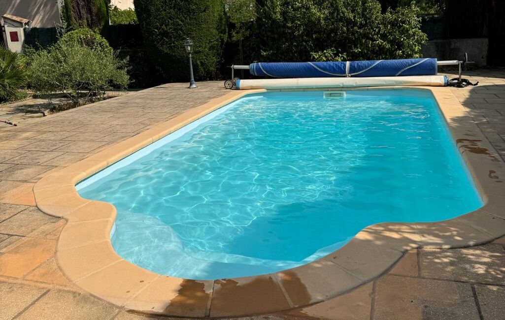 Un jardin agréable, une piscine en excellent état et un pool house avec douche et arrivée d’eau.