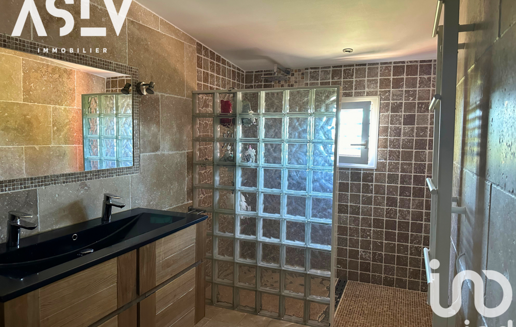 La maison comprend trois chambres, dont une suite parentale avec salle d’eau, dressing et bureau, ainsi qu’une autre salle d’eau. Elle est équipée de la climatisation réversible et d’une cheminée.