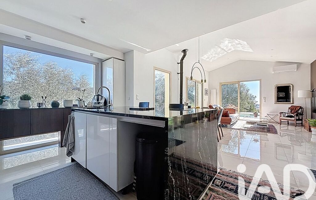 iad France - Gwenaelle Traina vous propose: À proximité immédiate de Nice, sur le secteur de Rimiez à Saint-André-de-la-Roche, cette villa contemporaine de 145m2 offre un cadre paisible et verdoyant, tout en bénificiant d'une vue dégagée sur la ville et un bel horizon jusqu’à la mer.