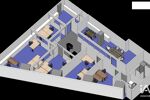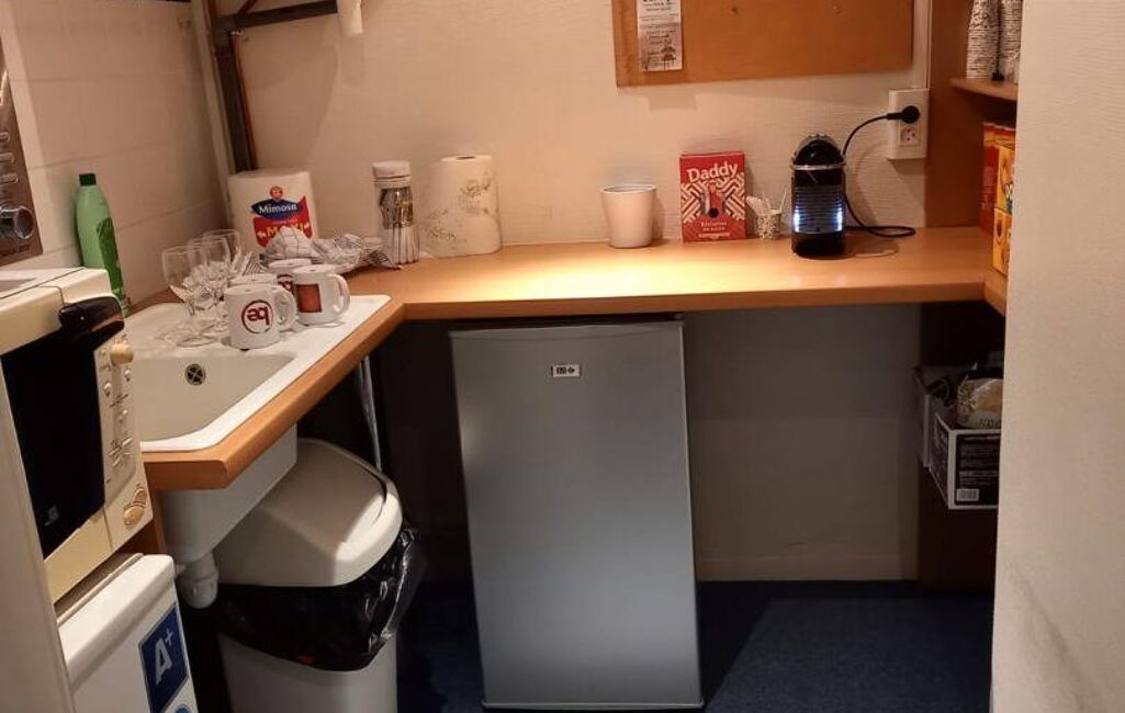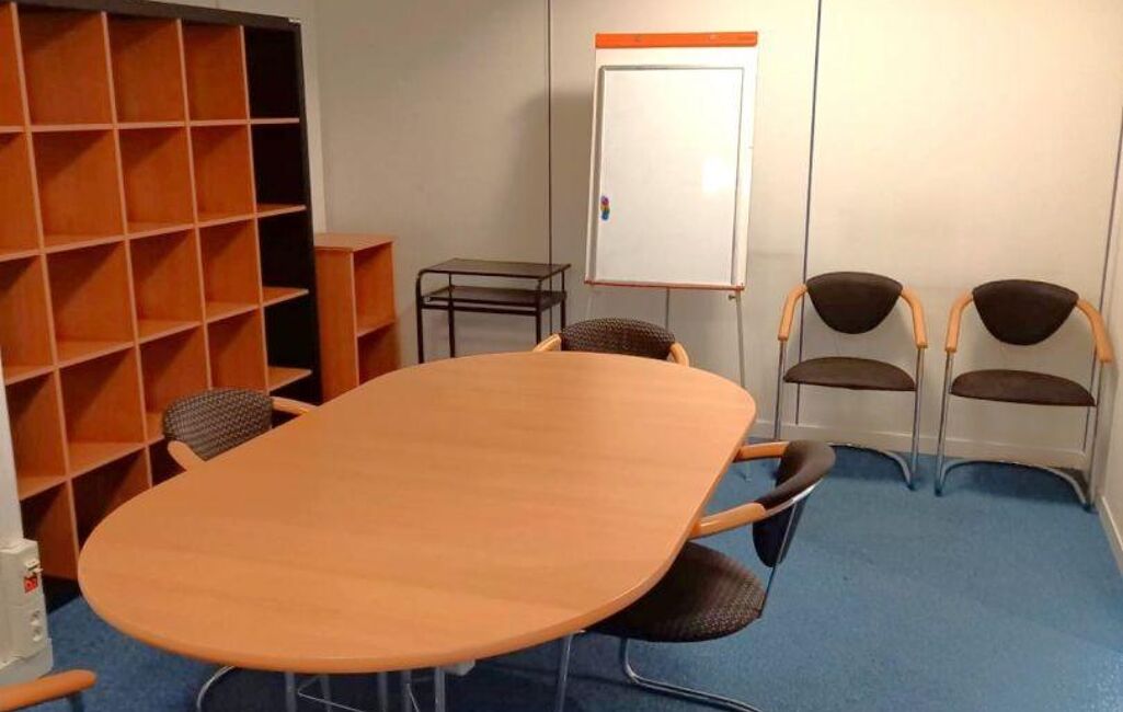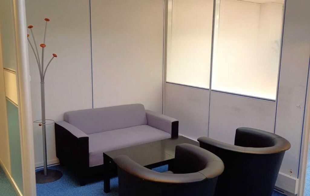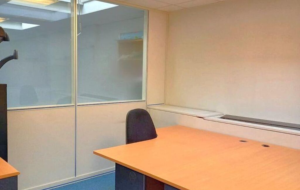 Accueil, 13 postes organisés dans 5 bureaux meublés de 12, 17, 31 m2 environ et 1 salle de réunions, fibre, baie de brassage, cloisonnements amovibles, kitchenette, sanitaires, stockage, 3 places de parking en sous sol dont 1 avec borne électrique.