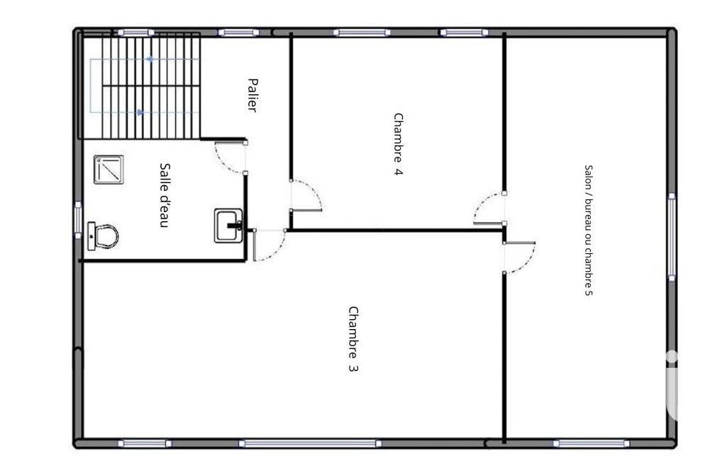A 1er, un palier dessert 3 chambres dont 2 vaste de 20 m² ainsi qu'une salle d'eau. La 3ème chambre actuellement aménagé en salon/bureau est mansardée avec des rangement sous pente.