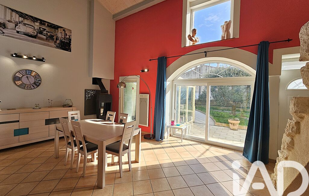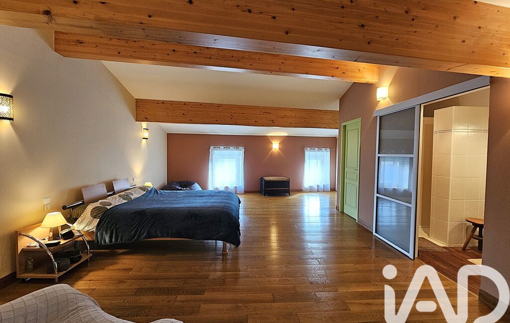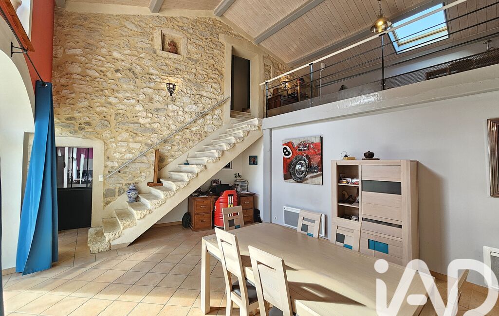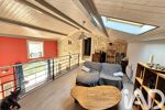 Elle offre une cuisine dinatoire équipée, un séjour lumineux avec poêle à bois et véranda, et un salon chaleureux en mezzanine.