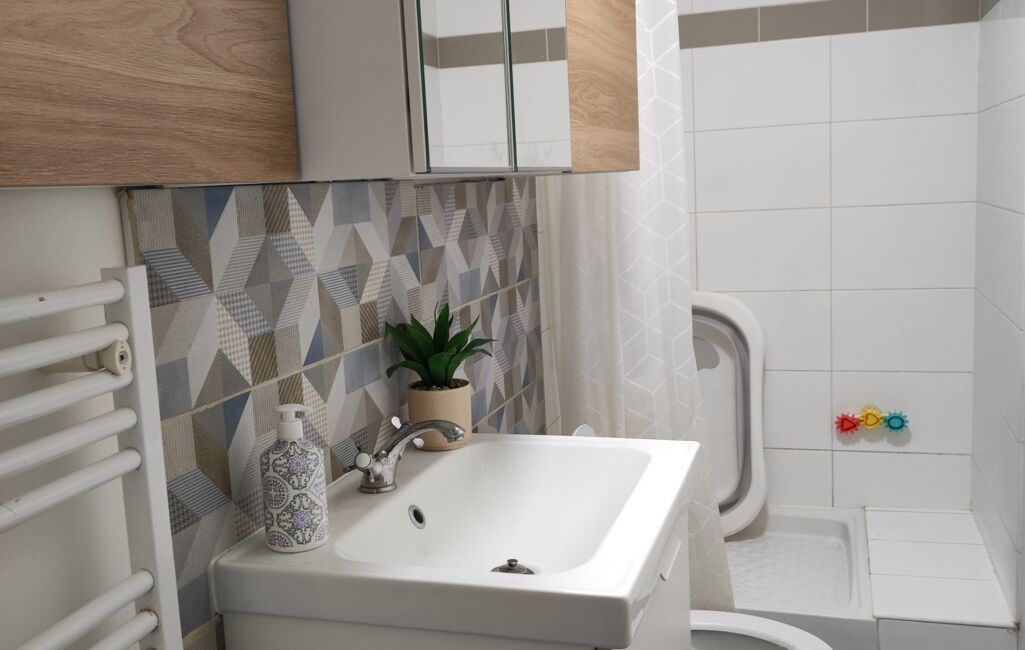 Un appartement de 52 m² type F3 , une entrée avec placards , cuisine semi ouverte équipée , un séjour , 2 chambres avec accès terrasse et jardin , une salle d'eau avec wc. le tout en chauffage électrique et classé D (diagnostics de performance énergétique) .