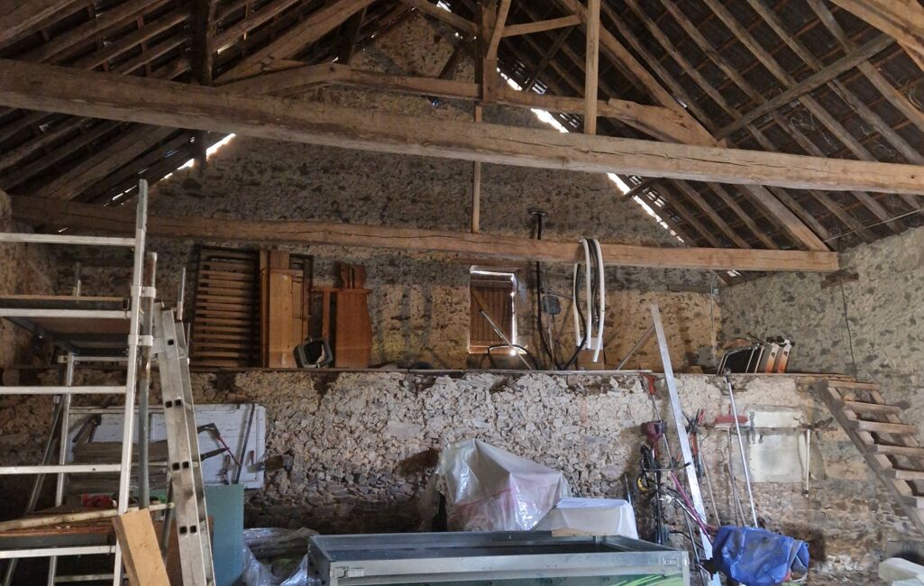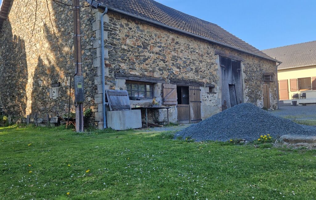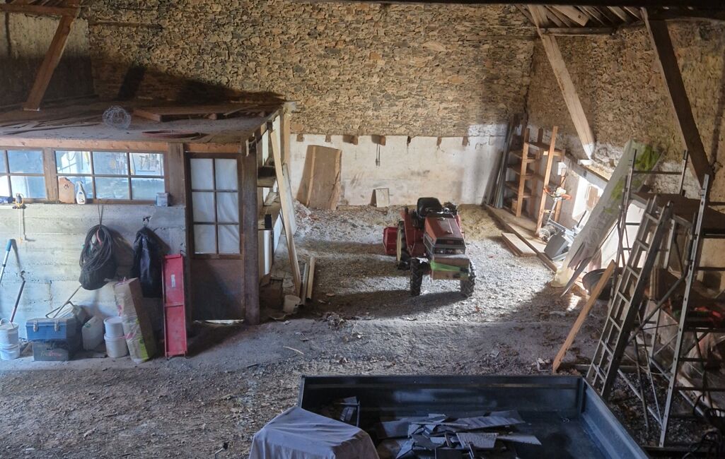 Côté extérieur, cette propriété dispose d'une belle terrasse plein Sud, d'un four à pain en Pierre et de deux granges 170m2 et 150m2, un régal pour les bricoleurs ou artisans!!