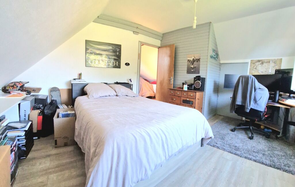À l'étage, vous découvrirez deux chambres en enfilade et un bureau ou petite chambre plus un toilette.