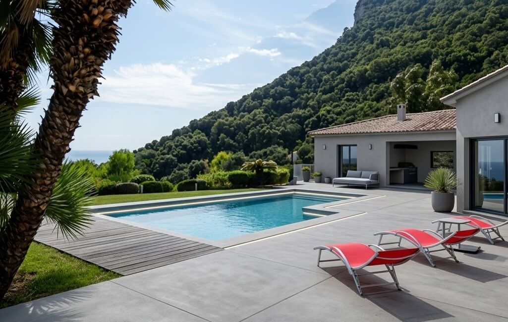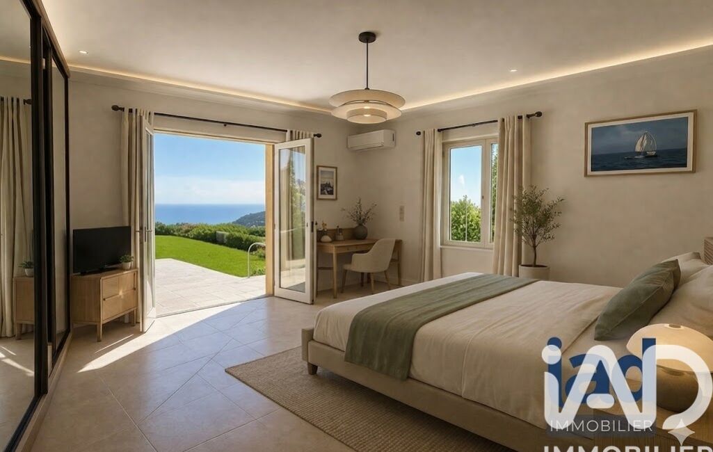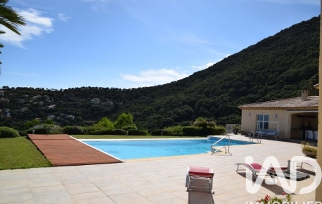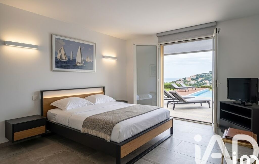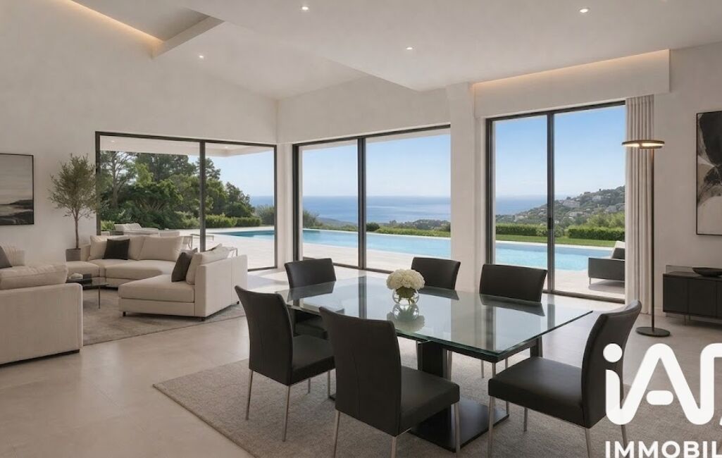 À l’extérieur, vous profitez d’un jardin méditerranéen, d’une piscine chauffée 6x12 m avec vue mer panoramique, d’un pool house convivial avec vestiaires et douches, et d’une terrasse couverte idéale pour les repas d’été.