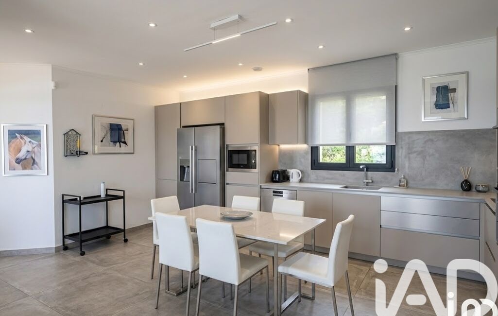 Édifiée sur un terrain paysager de 2 120 m², elle se compose d’un vaste séjour lumineux avec sa cuisine ouverte, d'une superficie d'environ 100 m². Cette dernière s'ouvrant sur une grande terrasse , 5 chambres en suite avec leur salle d’eau ou bain, ainsi qu’une mezzanine de 20 m².
