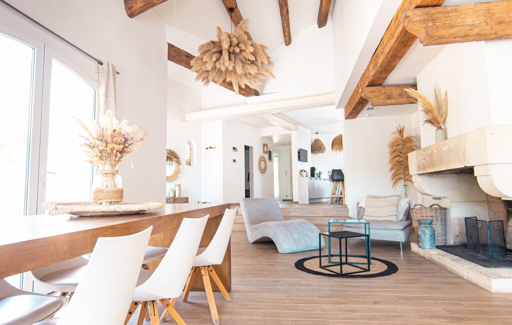 En entrant dans cette maison, vous serez séduit par le salon chaleureux avec sa cheminée et sa grande baie vitrée, la cuisine ouverte et équipée, offrant un espace de vie convivial et fonctionnel. La maison bénéficie également d'une terrasse de 150 m², idéale pour profiter des moments en plein air en toute tranquillité.