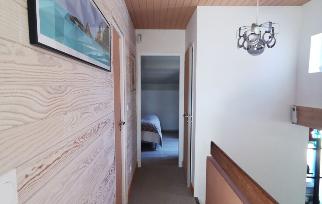Grâce à ses larges ouvertures et son exposition Sud-Ouest, la pièce de vie bénéficie d’une belle luminosité tout au long de la journée.