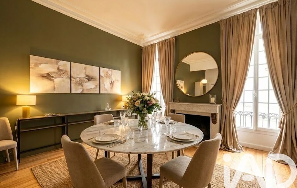 La pièce de vie principale séduit immédiatement par sa clarté, grâce à trois grandes fenêtres ouvrant sur un espace aux proportions harmonieuses.