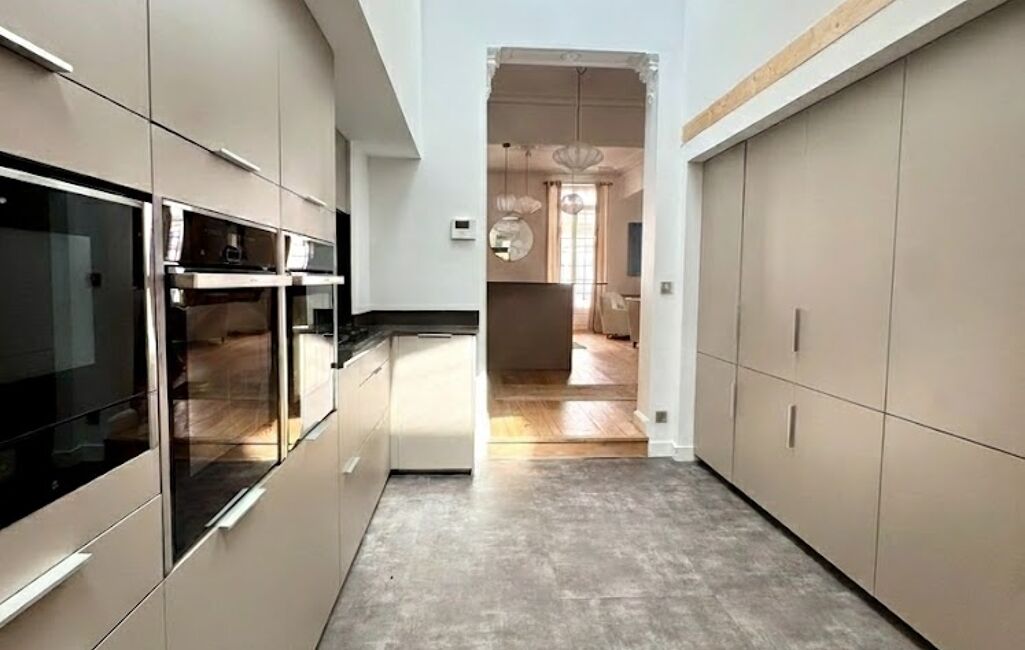 La cuisine, ouverte et entièrement équipée, se distingue par son niveau de finition haut de gamme, sa belle hauteur sous plafond et son puits de lumière qui en fait un véritable cOEur de maison.