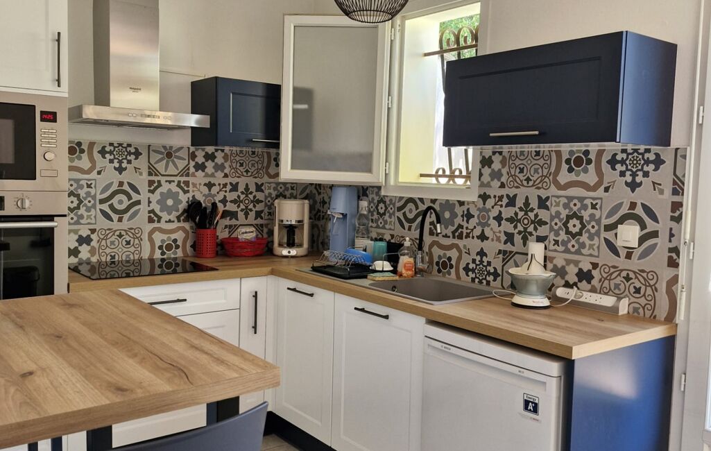 Une cuisine récente avec accès sur l extérieur .