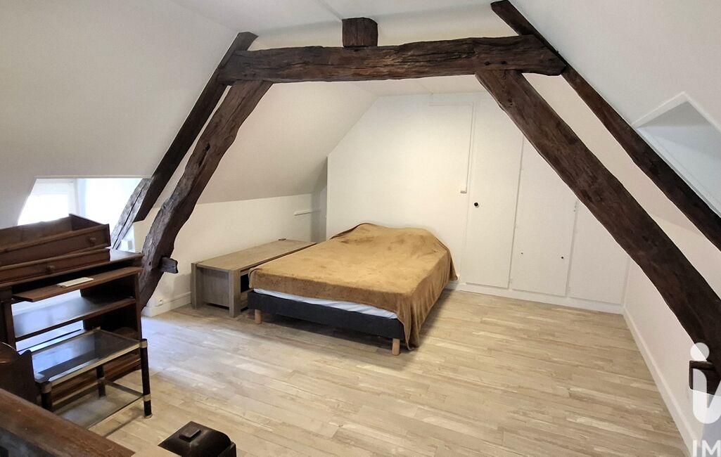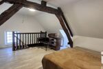 A l’étage vous trouverez une grande chambre ainsi qu’une autre pièce pouvant servir de bureau, chambre d’appoint ou y faire une salle de bain.