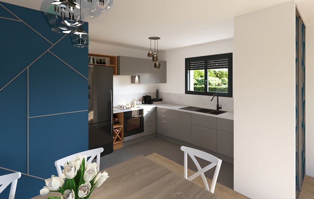 Ce projet vous est proposé « tout compris » hors peintures et cuisine.