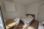 On entre directement dans la pièce de vie avec cuisine ouverte, salle d'eau avec douche à l'italienne et wc, ainsi qu'une grande chambre avec bureau et armoire.
