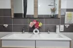 Une salle de bain avec baignoire et meuble double vasque.