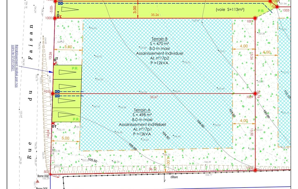 Lot B de 470m² en trois faces, hauteur maximale de 8 mètres. Assainissement autonome à prévoir