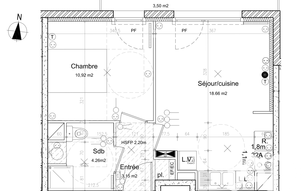 Il se compose d'une entrée avec placard, d'une pièce de vie de 19 m2 environ, exposée nord, donnant sur un balcon, d'une cuisine ouverte, d'une chambre et d'une salle de douches avec WC.
