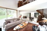 - Un très beau séjour de plus de 50 m2, avec sa cheminée, son salon au toit cathédrale et ses larges baies vitrées ouvrant sur le jardin.