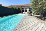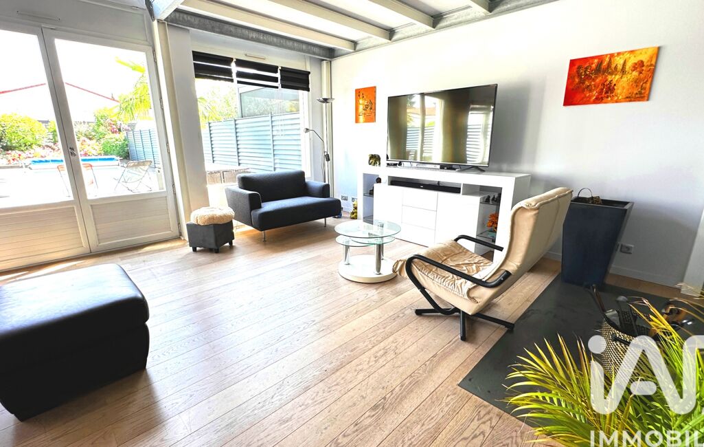 3 chambres + mezzanine – jardin avec piscine – garage + stationnement – quartier résidentiel