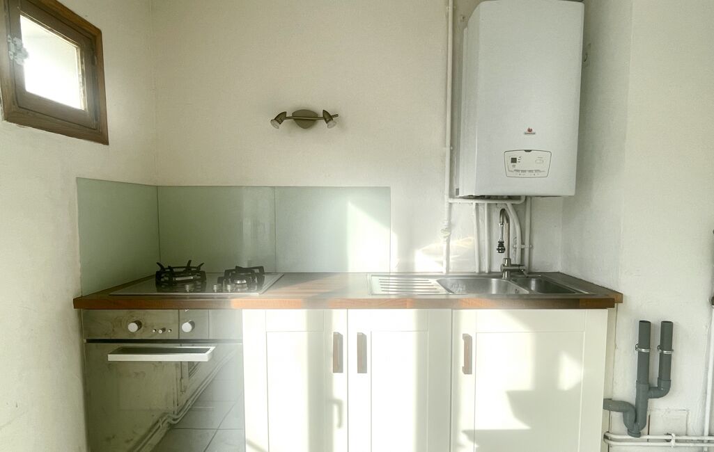 un coin cuisine partiellement équipé, une chambre, une salle d’eau et un WC indépendant.