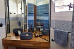 Ce niveau est complété par une salle d'eau moderne et fonctionnelle avec WC, une chambre qui dispose de sa propre terrasse en bois exotique avec un accès direct à la piscine, une buanderie et un garde manger.