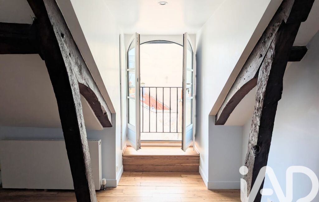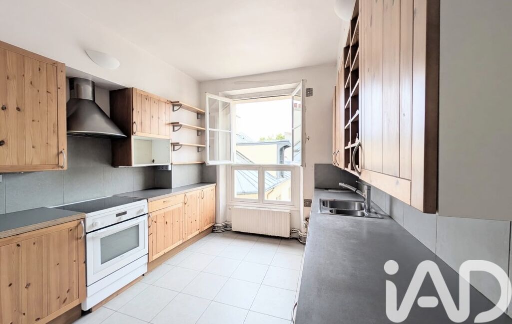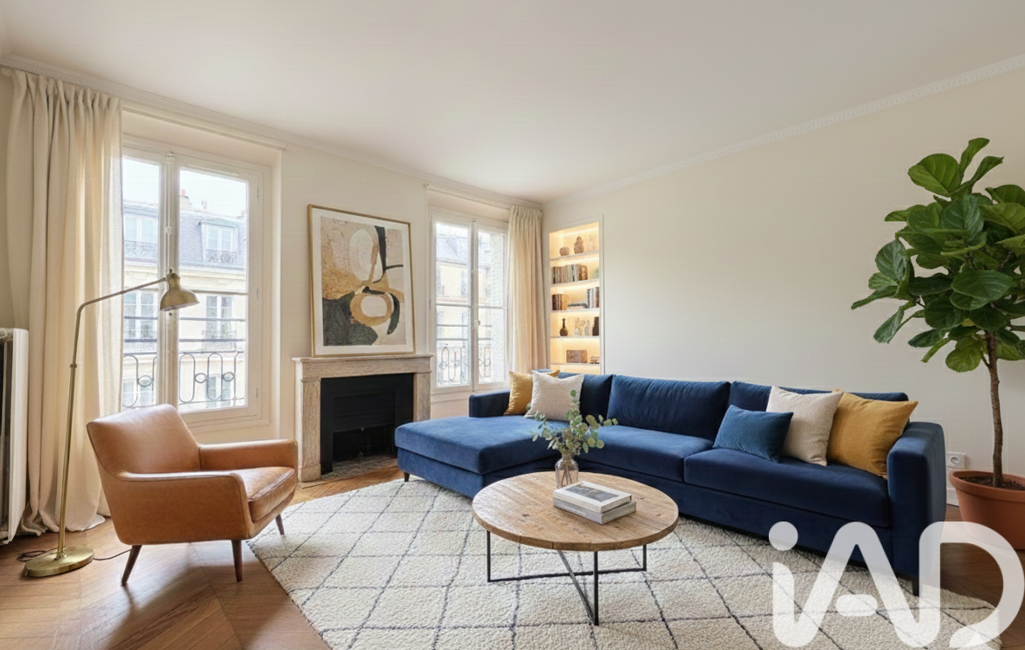 Il offre une cuisine indépendante bénéficiant d’une vue dégagée sur les toits versaillais, ainsi qu’un vaste double séjour baigné de lumière, sublimé par des éléments anciens : moulures, parquet en point de Hongrie et cheminées d’époque.