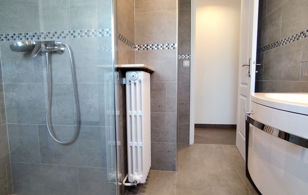 À l’étage, un grand palier lumineux pouvait être utilisé comme bureau ou salle de jeux dessert deux belles chambres supplémentaires, un WC indépendant ainsi qu’une seconde salle d’eau, offrant un agencement parfaitement adapté à une famille.
