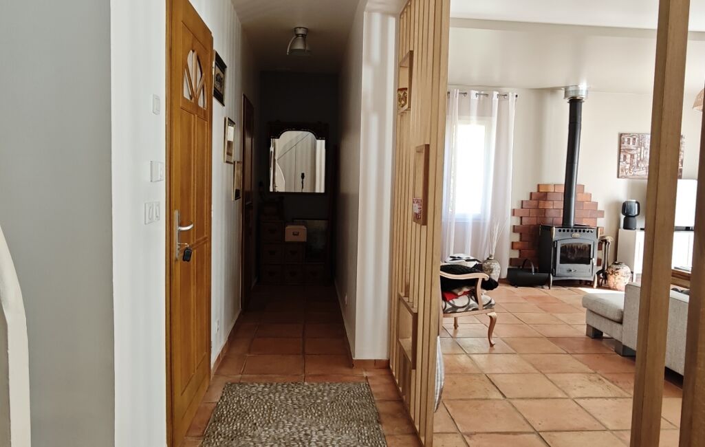 En entrant dans la maison, vous découvrirez un vaste séjour très lumineux.