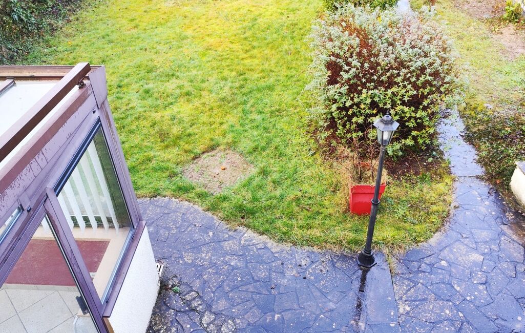 Le rez de chaussée comprend une entrée avec WC, un salon / salle à manger traversant de 35 m² menant à une véranda chauffée de 15 m², une cuisine moderne, séparée et équipée donnant sur un espace buanderie et le garage.